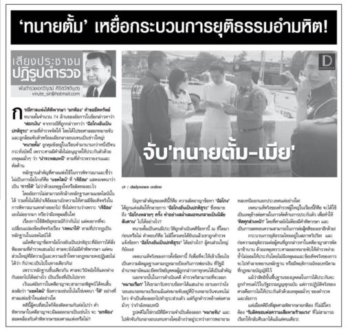 ที่มา :  นสพ.ไทยโพสต์ คอลัมน์ เสียงประชาชนปฏิรูปตำรวจ :  ฉบับวันที่ 2 มี.ค. 2569